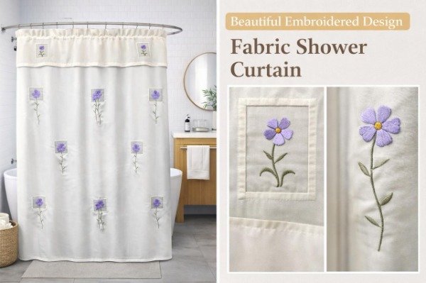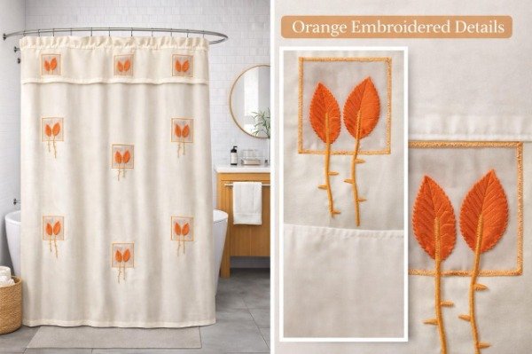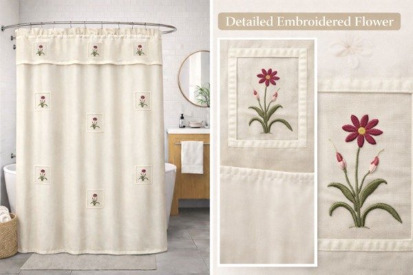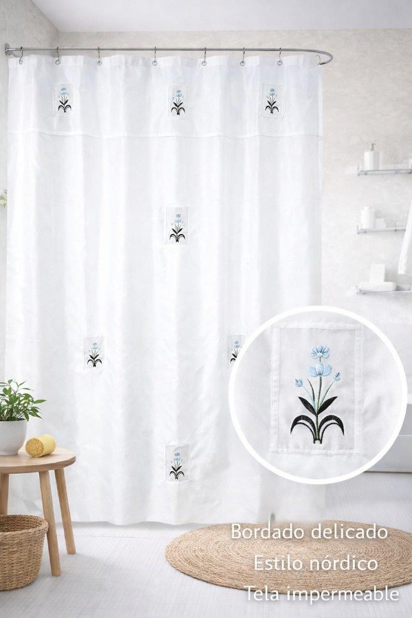 Cortina Teflon Bordada Con Aplique en Organza